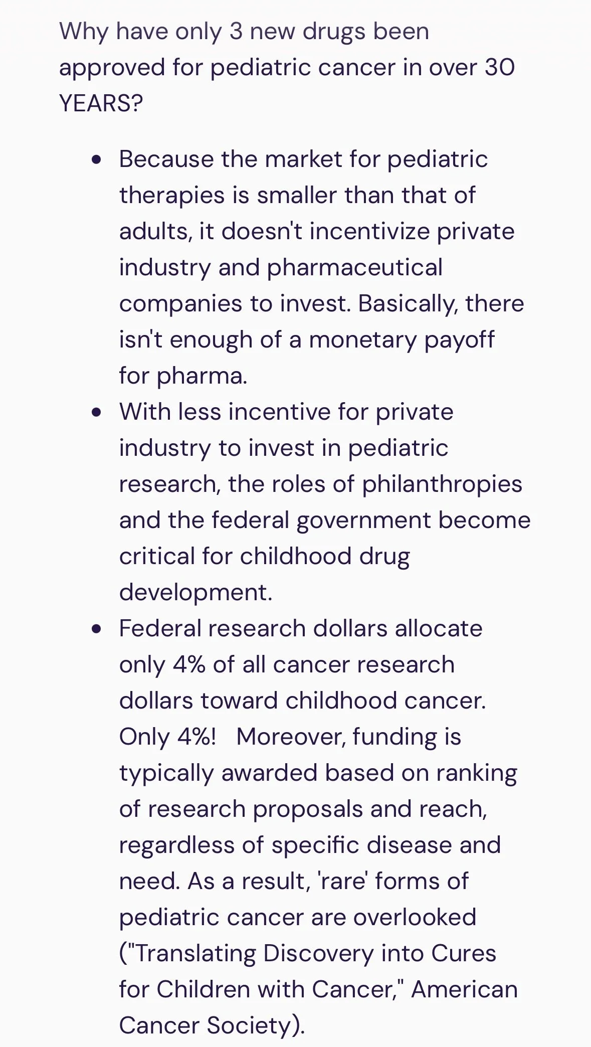 I added a particularly upsetting statistic from the website about the lack of funding for pediatric cancer (especially for rare cancers like Oliver’s).